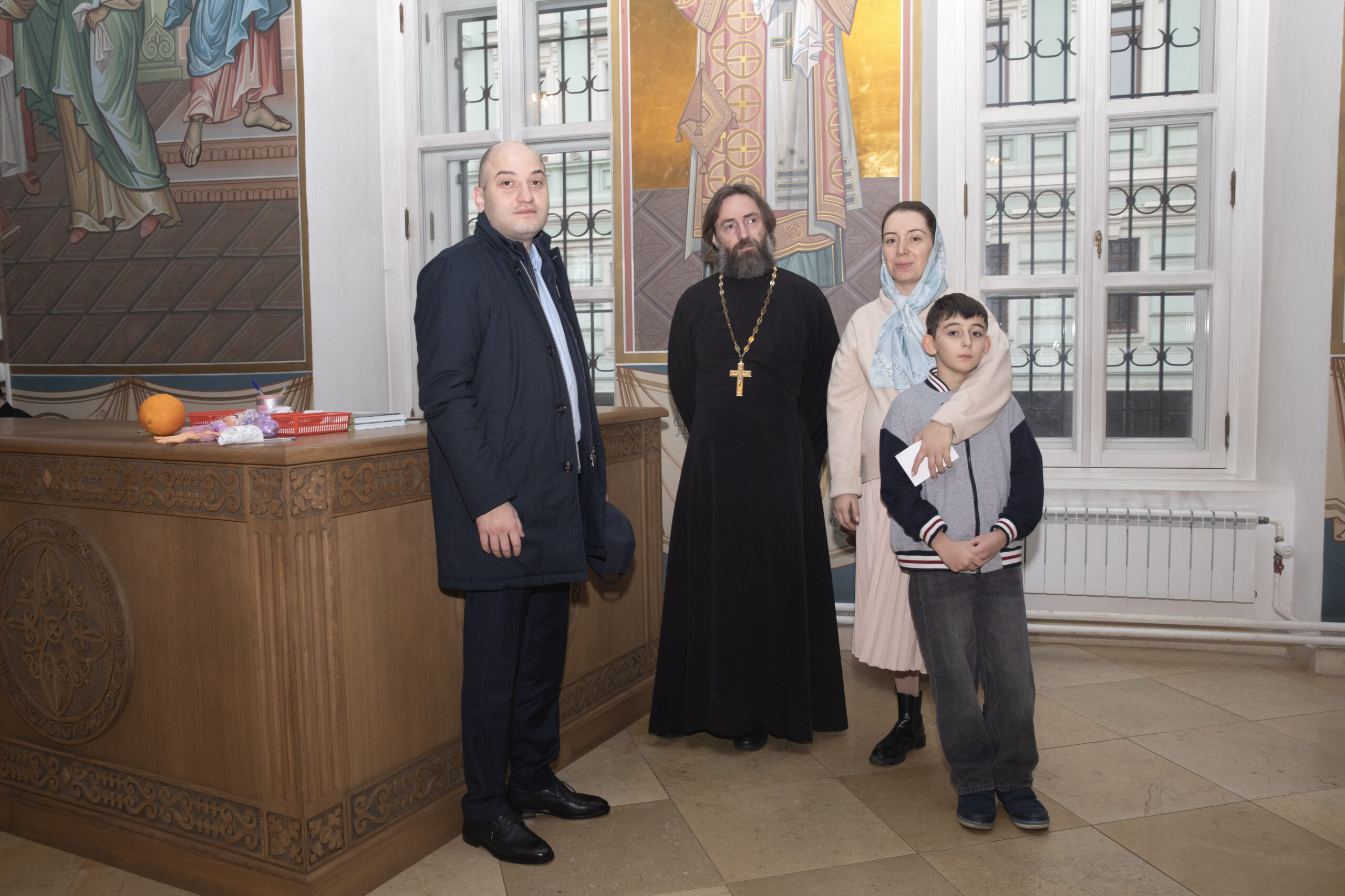 С поздравительным словом к детям обратился настоятель храма Рождества Пресвятой Богородицы на Кулишках иерей Вячеслав Джейранов: