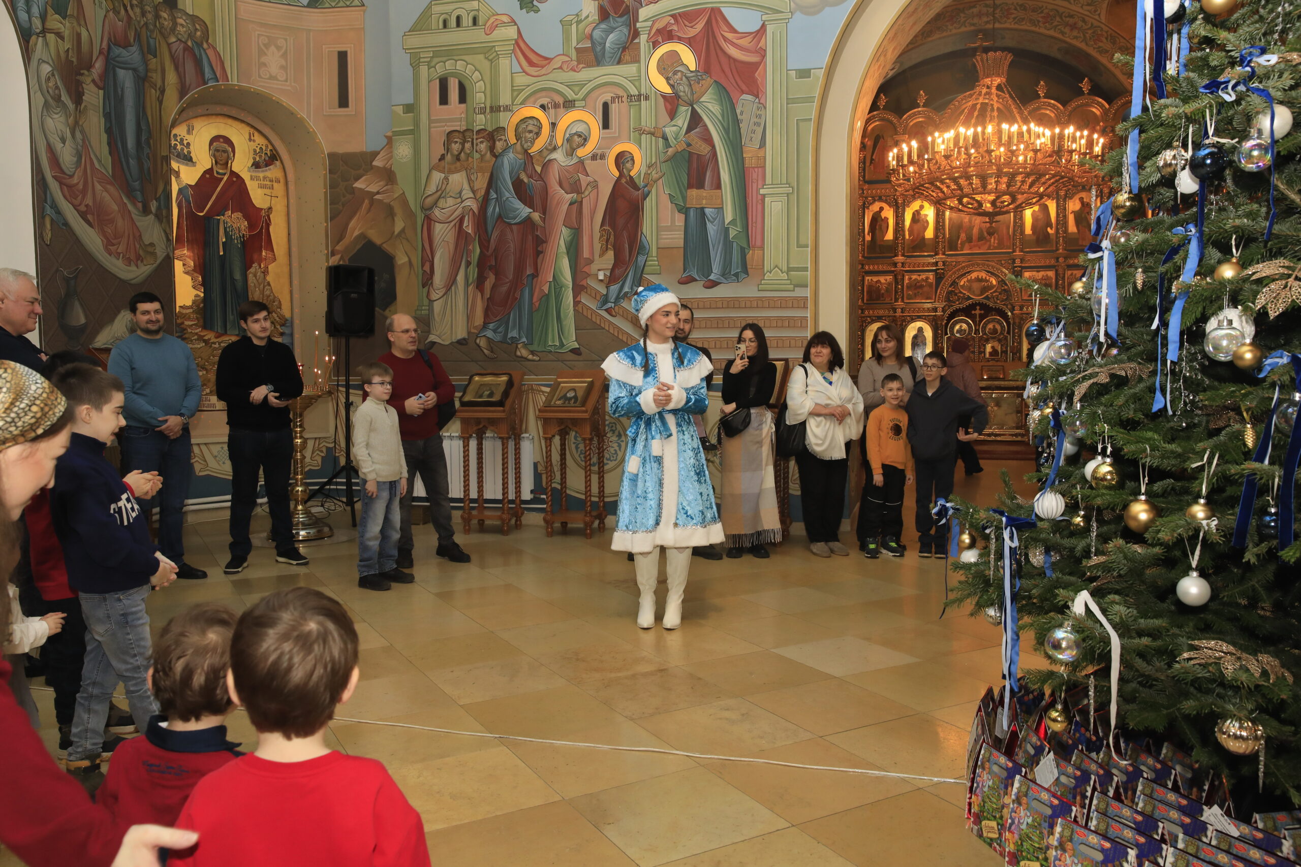 В очередной раз Аланский храм встретил юных прихожан в праздничном убранстве: в центре зала стояла украшенная ёлка, переливались яркие гирлянды, создавая атмосферу настоящего праздника.